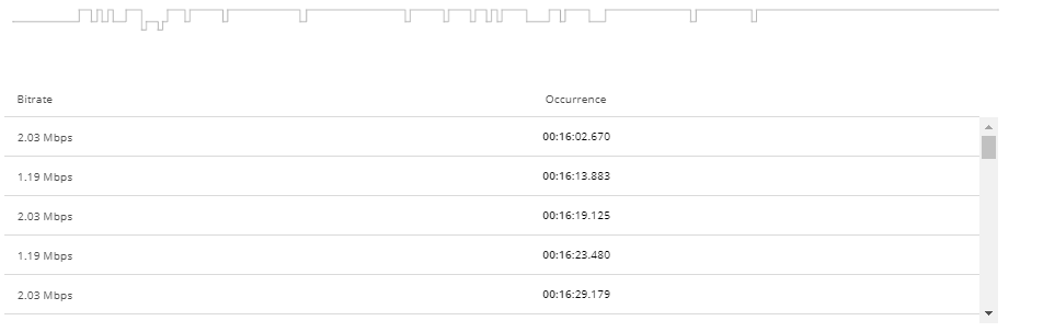 The Bitrate timeline expands to show the timeline of bitrates and when the bitrate switches occurred.