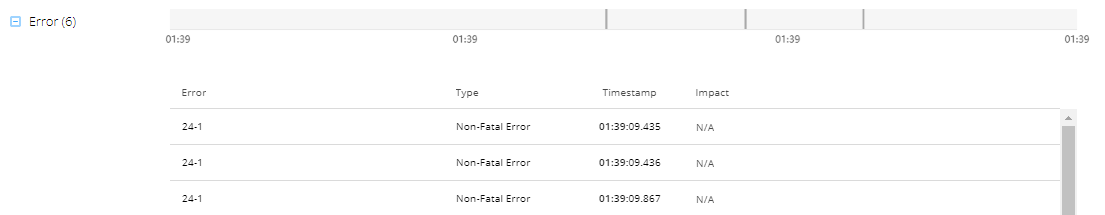 The Error timeline displays the event timeline with the number of errors during the session along with event markers indicating when the events occurred.