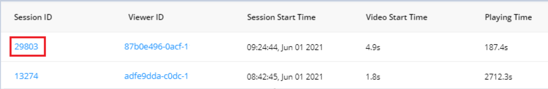 Note: To open the Viewer Sessions page, select a interval up to 24 hours in the Diagnostics time series and from the Viewer Session tab select Viewer Sessions.