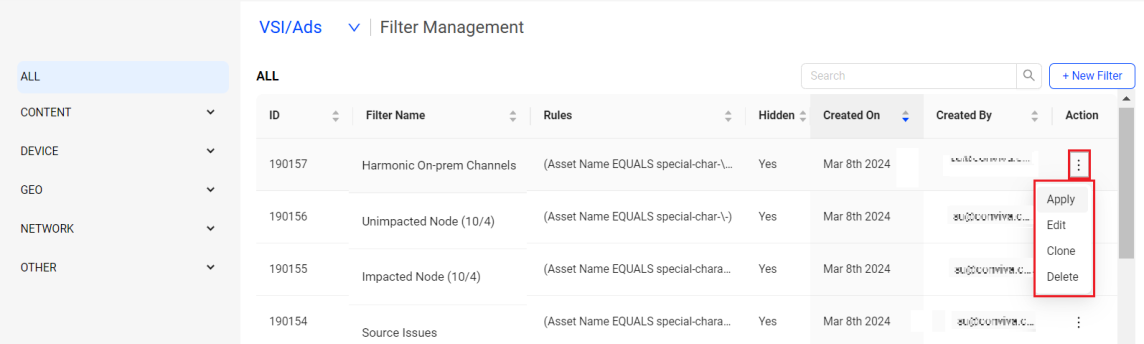 Image: Browse Saved Filters -- Filter Management