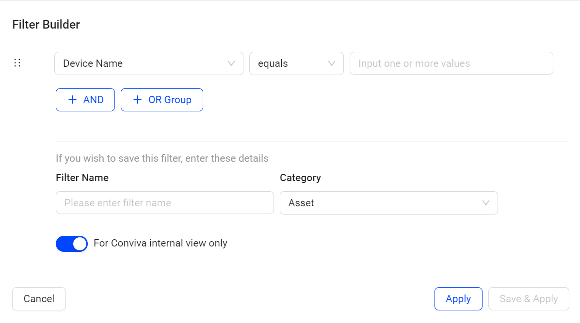 Create Filters using Filter Builder