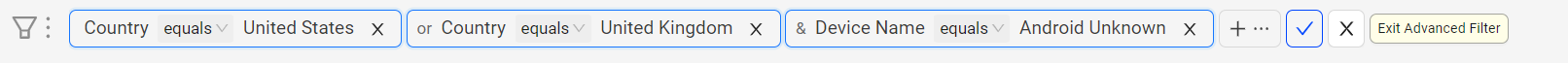 Click the checkmark to apply or X to cancel the updates, OR click Exit Advanced Filter button to exit the advanced filter mode.