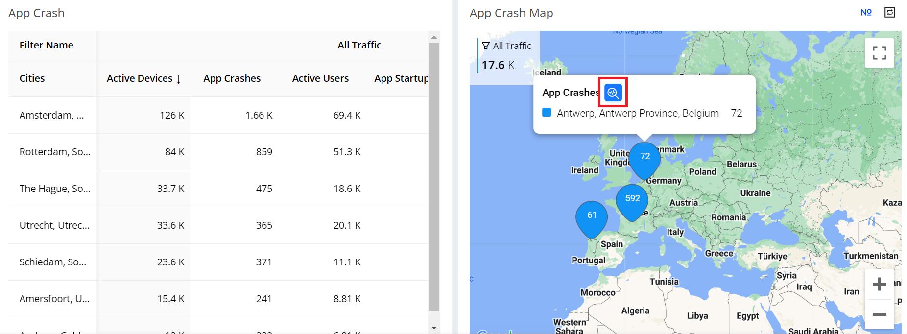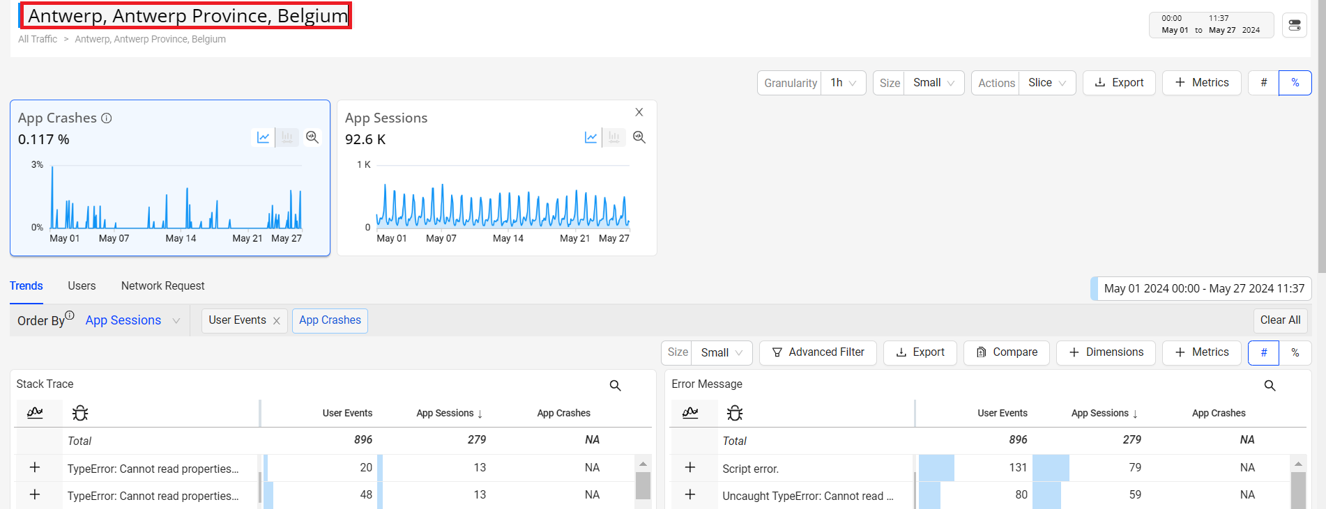 Click the Focus button to see an enhanced view of the selected dimension value as a filter in the Trends dashboard. You can have in-depth data analysis on the opened Trends dashboard.