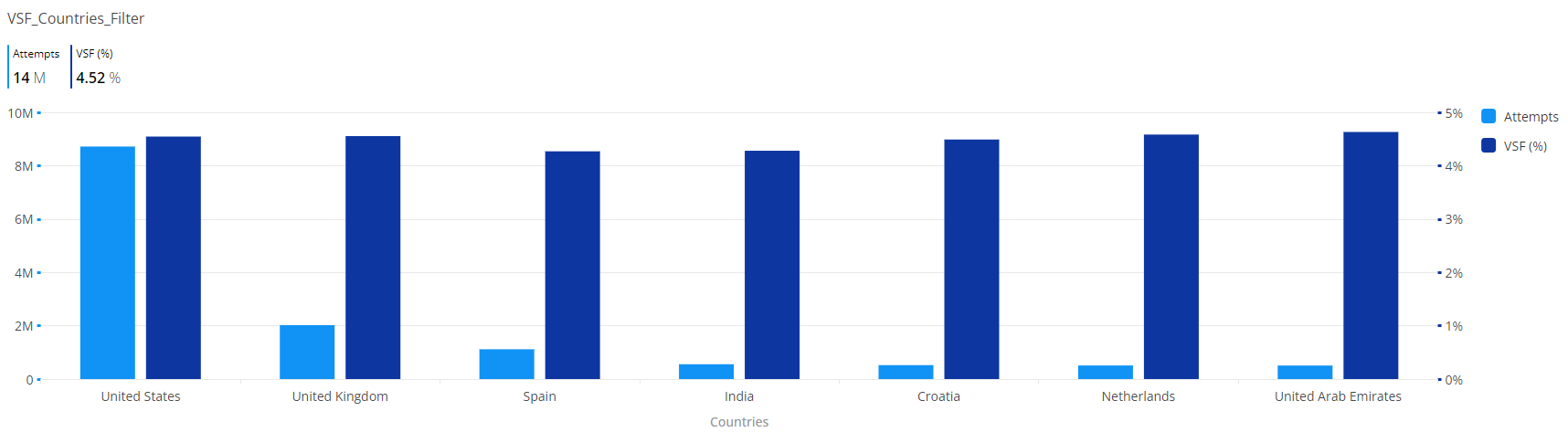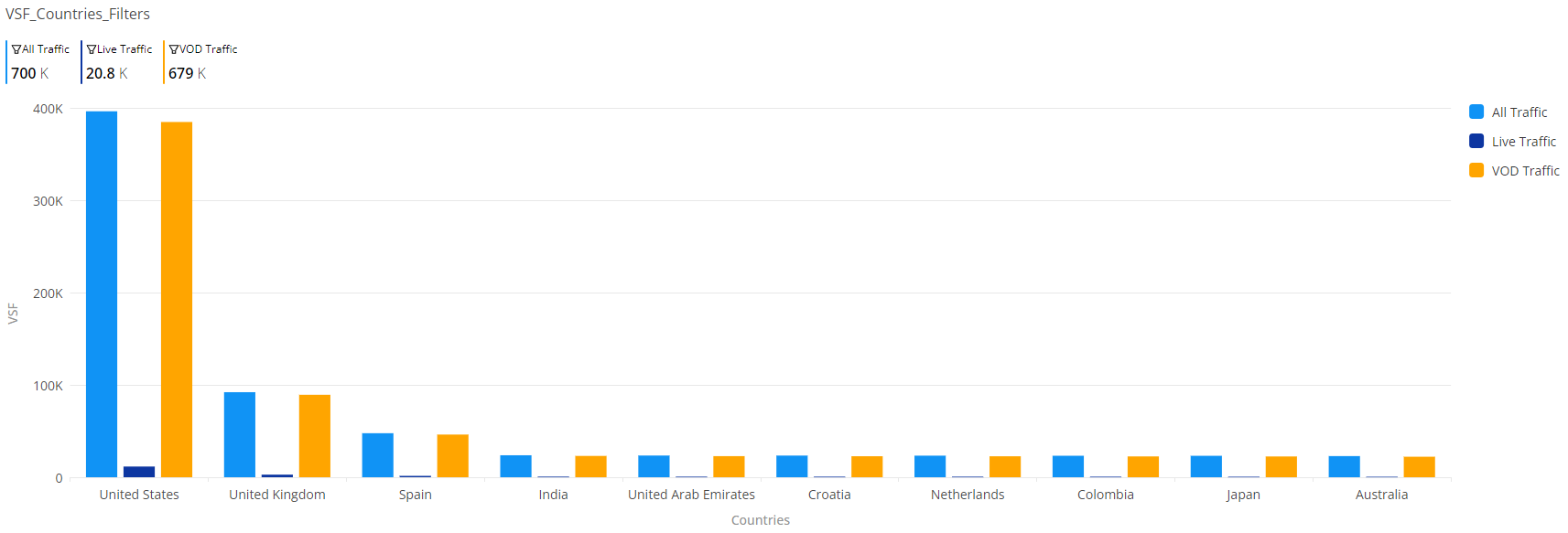 This bar displays VSF across various countries, covering All Traffic, Live, and VoD.
