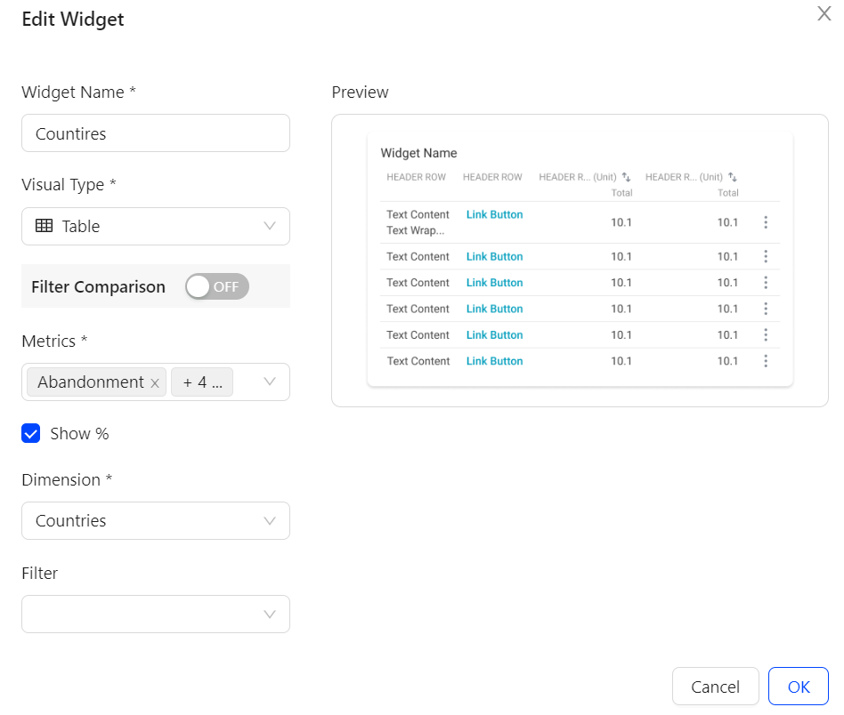 Custom dashboards allow you to easily display metrics in percentage view mode within widgets.