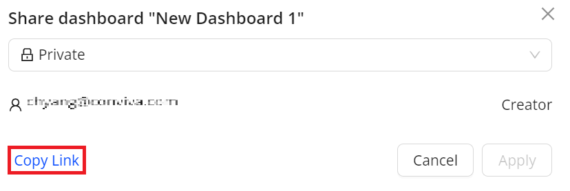 (Optional) To obtain a link to the dashboard, click Copy Link.