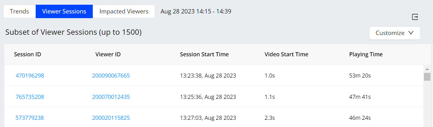 For more information on the session details, see Viewer Sessions.