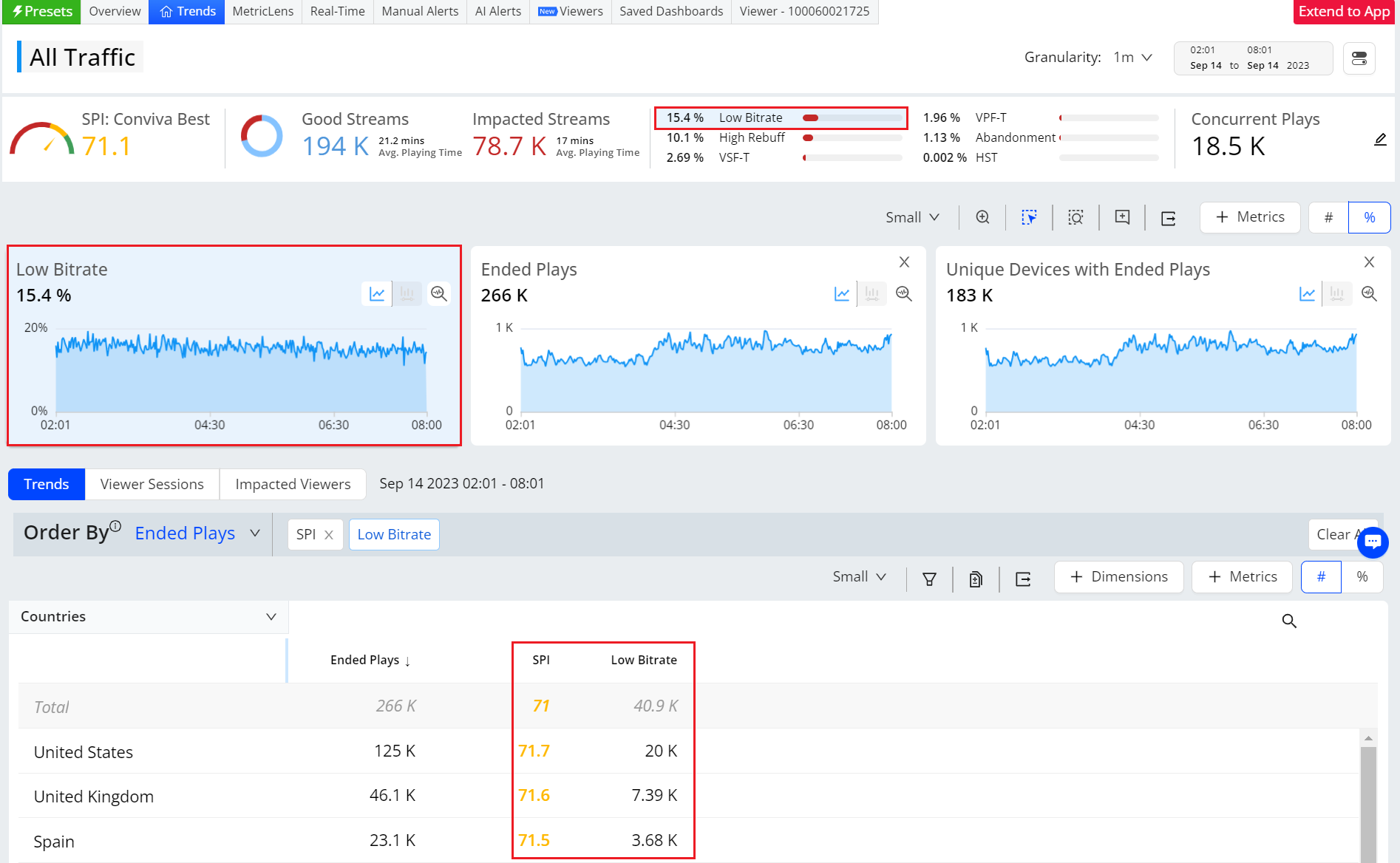 For more information on streaming performance index, KPIs, good Streams, impacted streams, see Streaming Performance Index.