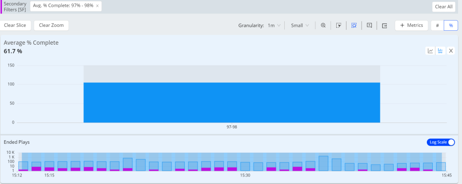 Additional secondary filters can be applied to further identify the root cause by a combination of metric settings, such as high bitrates and high rebuffering.