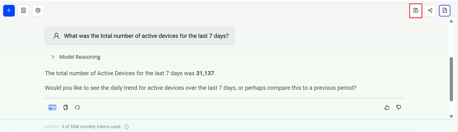 Token usage in chat provides insight into the number of tokens consumed by prompts. Nexa displays token usage by default.