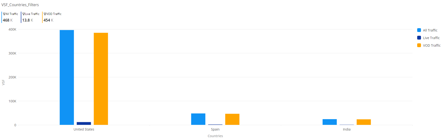 This bar shows the VSF in various countries for Live traffic.