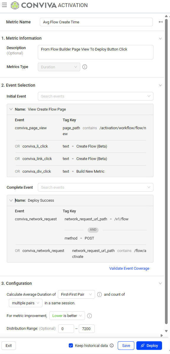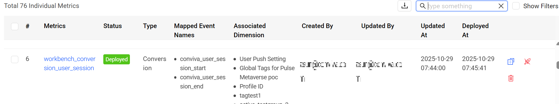 Quickly confirm a Custom metric type, such as a conversion, interval, or duration metric, to fully understand the type metric data and deployment status.