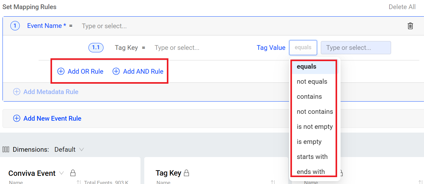 Select a condition (Starts With, Ends With, Equals, and Contains) from the drop-down list.