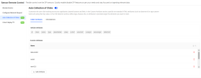 Customize the user-click tracking across the application, beyond tracking the click events for buttons and links. This section consists of two tabs, Collect Attributes and CSS Selectors. Use the default attributes and CSS selectors, and also create additional custom tags, CSS selectors, and attributes to track user clicks for various purposes, such as defining Out-of-Box (OOB) metrics, resolving UX issues, and even creating meaningful user Flows.