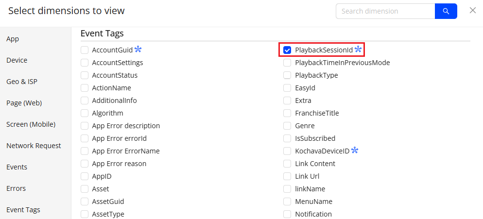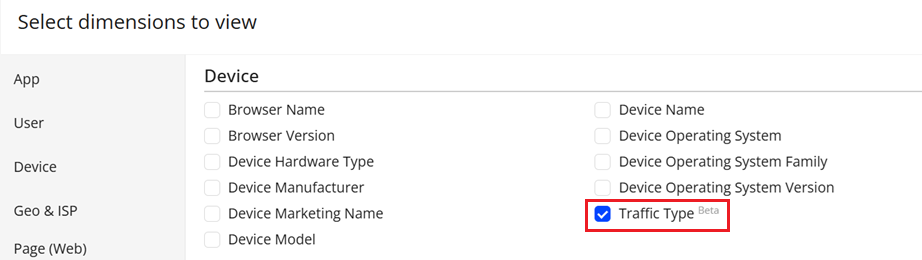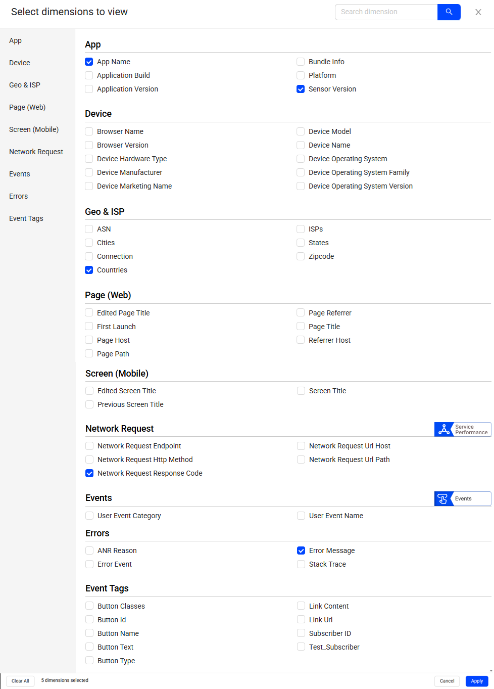 Select the checkbox next to the dimensions to add the dimensions to the filters and click Apply.