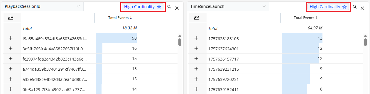 Use Trends distribution mode to discover how streaming sessions affect the overall metric value. This helps in discerning whether the metric value reflects consistent session behavior or if session outliers cause variance.