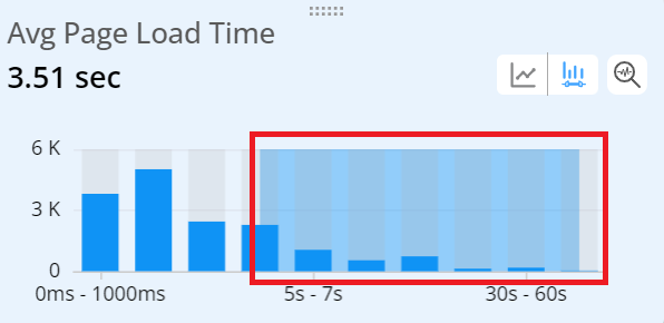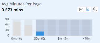 Within a distribution, drag to select distribution bars to apply an advanced secondary filter based on the selected app sessions. Secondary filtering enables analysis of specific metric performance, such as app sessions with an average minutes-per-page greater than 30 seconds.