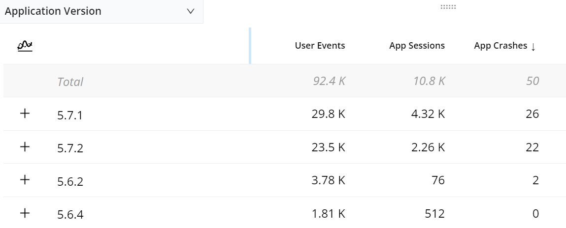 | App Crashes | total native application sessions with application errors. |