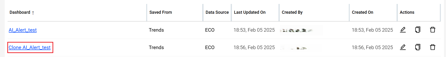 For more information on cloning public saved dashboards, see Public Saved Dashboard; for cloning private saved dashboards, see My Dashboard.