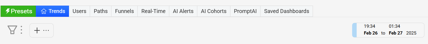 The Trends enables AI alerts and date comparison to present detailed information in metric widgets.
