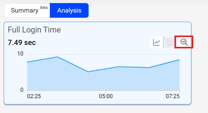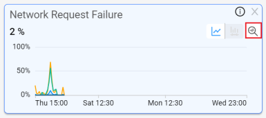 Click the Focus icon in a metric time series to display an expanded view of the time series above the trend data. For both Flow Average Duration and custom metrics, click the Focus icon in distributions to use the last bucket to identify and analyze problematic cohorts. For example, apply the last bucket as a secondary filter to explore issues like errors or network delays in users with unusually long durations.