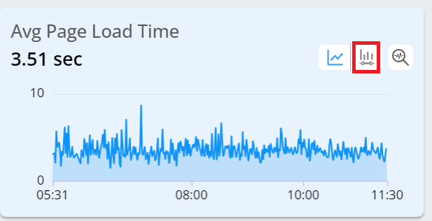 The focused view of the metric provides the enhanced view of the selected metric along with the secondary metric details. Clicking the distribution icon to see the distributed view of the time series.
