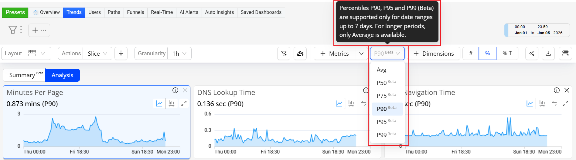 Trends: Percentile Aggregation for Duration Metrics (Beta) -- (Jan 2026)